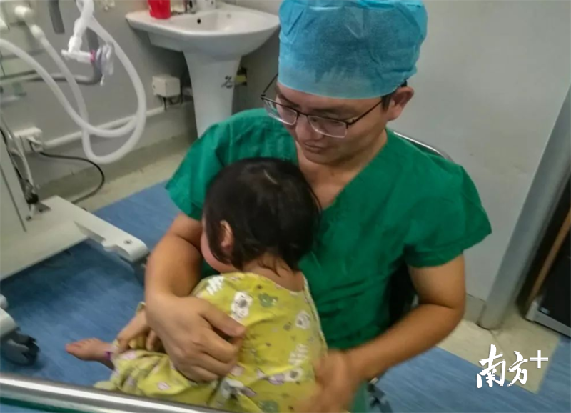 2005年,刚毕业的孙国申入职东莞市石龙博爱医院(现东莞市儿童医院),成为东莞第一位男护士。十几年过去了,他依旧坚守在护理岗位上。照片中的他正在安抚患病女童。他说越来越多的男性加入到护士行列,感到很欣慰。