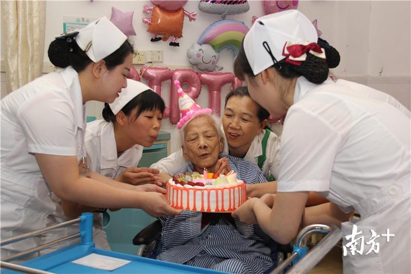 简婆婆,她是一位高龄的孤寡老人,因骨折住进道滘医院外科。住院期间,护理人员对她照顾周到。在简婆婆90岁生日之际,医院为她举办生日会。护士们的关怀,减少了简婆婆住院的恐惧,放心轻松地接受治疗。