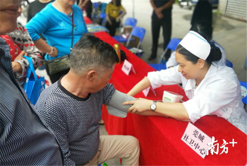 这是普通的一天,莞城社卫中心黎凤珍护士长正在进行义诊。平常的画面背后是年复一年的坚持。疾病预防胜于治疗,无论寒冬还是酷暑,黎凤珍每个月都参加至少1—2场义诊活动,把健康的理念、良好的生活行为方式等带给更多的居民。
