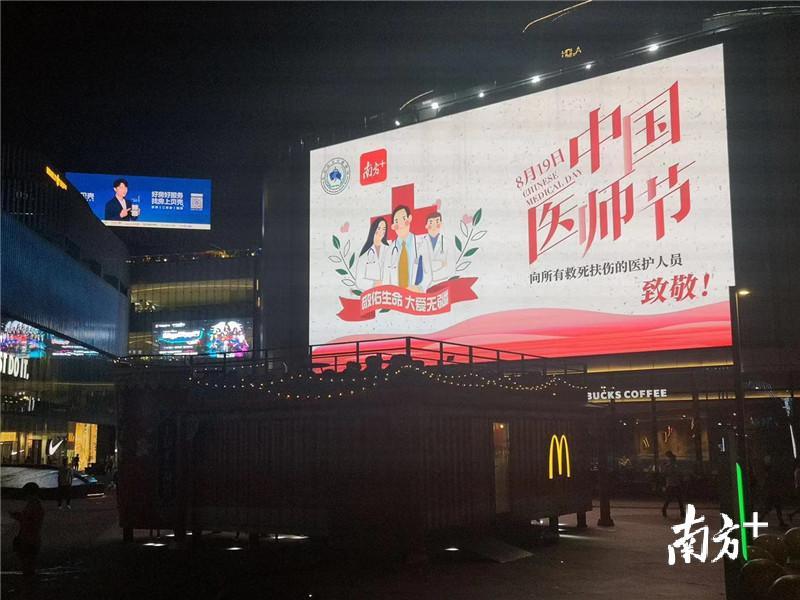这是一群可爱可敬的人,他们坚守岗位默默付出,他们争分夺秒挽救生命,他们挺身而出救死扶伤……为了向医师们致敬,感谢这群健康的守护者,南方+与东莞市卫生健康局联手制作的致敬海报,昨天亮起在东莞的各个街头,从海德广场、国贸城的显示大屏,到医院庆祝活动的现场,引发全城“表白”热潮。
