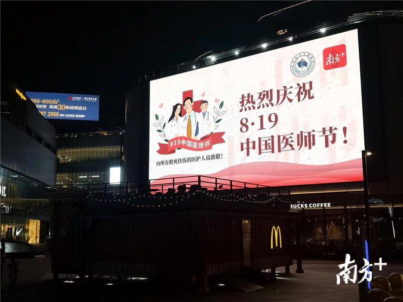 今日上午9时,刚下班的东莞市中医院骨科医生曾勤在朋友圈转发了这场灯光大秀,昨天晚上他连续做了四台手术,刚刚有空看手机。8月19日是第二个医师节,但不少白衣天使依然忙碌在挽救生命的一线,来不及到亮灯现场感受热烈的氛围。