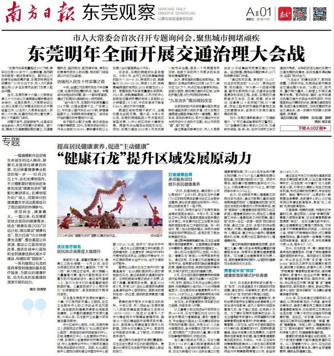 悠悠民生,健康最大。一直以来,石龙镇紧密结合居民的健康需求,结合“健康东莞2030”行动计划,提出建设“健康石龙”,致力打造“15分钟健康生活圈”,整合基层公共资源,推动公立医院综合改革,推进区域中心医院和全民健康信息化高水平建设,构建区域“医联体”。