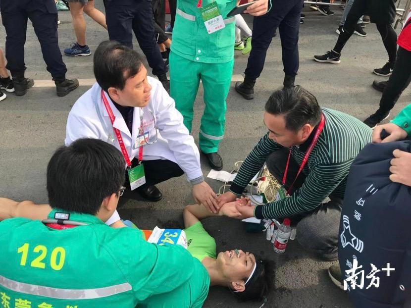 除了志愿者,首先发现他的是人群中的一名医师跑者。