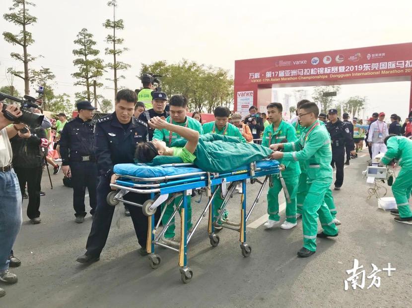 在场医护人员极力阻止,经过劝导后,刘先生才同意退赛,并被救护车送到东莞市中医院,接受进一步的治疗。后来,在中医院工作的同行告诉孙景福,这名参赛者没事了,他才放下心里的一块大石。