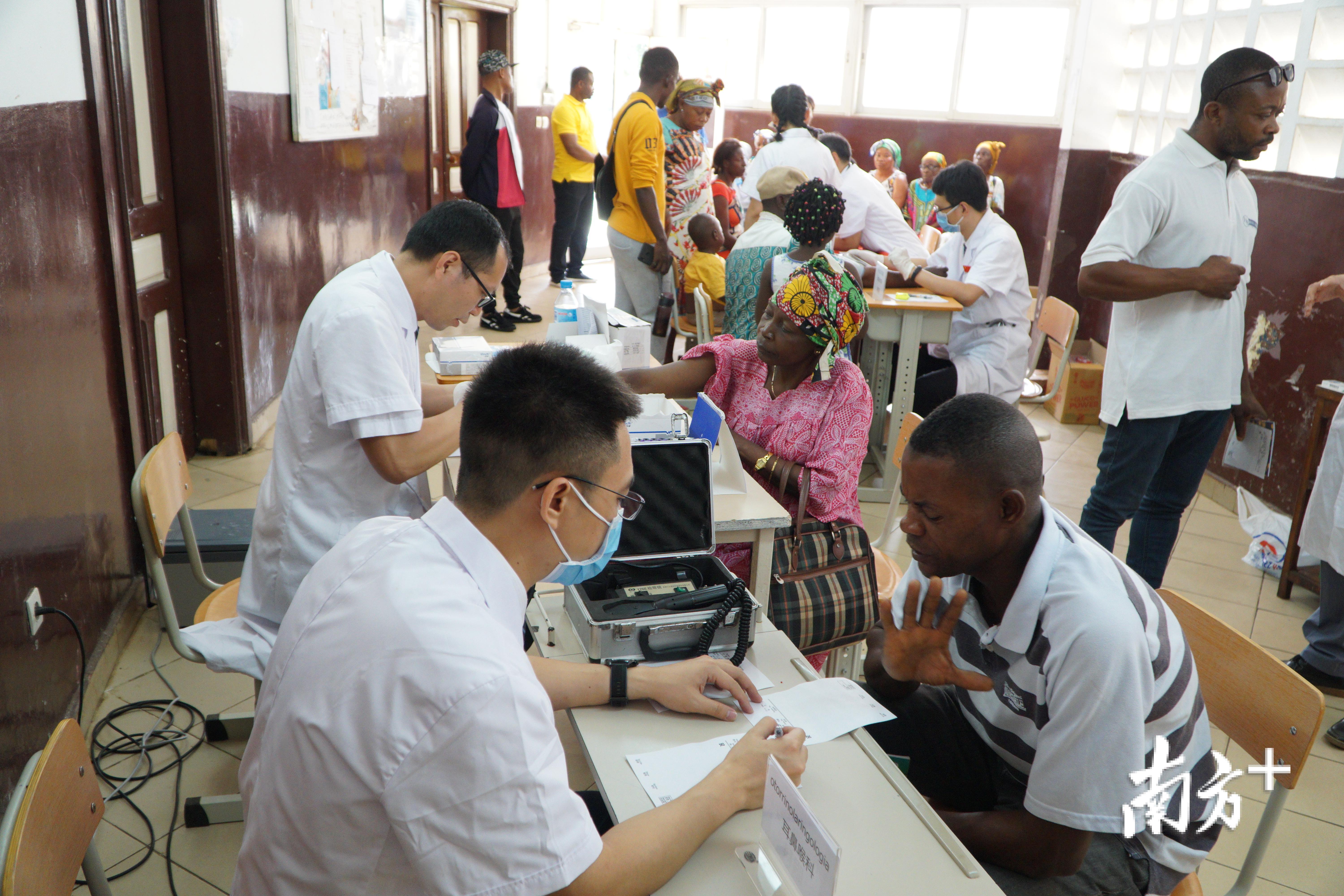 医疗队为本次义诊活动提供了内科、外科、妇产科、儿科、眼科、中医针灸推拿科、疼痛科和检验科的医疗服务。前来咨询就诊的居民很多,涅方医院的医护人员做起了导诊,专门负责叫号和维持秩序,保证义诊有条不紊地进行,有些居民回家后,还把亲朋好友叫过来,因此就诊者络绎不绝。