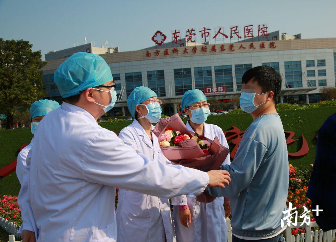 2月20日下午3时,29岁的A先生走出市人民医院万江院区新冠肺炎隔离病房,他面带微笑,热情地和送他的医护人员打招呼。市人民医院院长蔡立民送他鲜花,他接过后又要送给医护人员,“整个住院近20天,他们是我最应该感谢的人。”