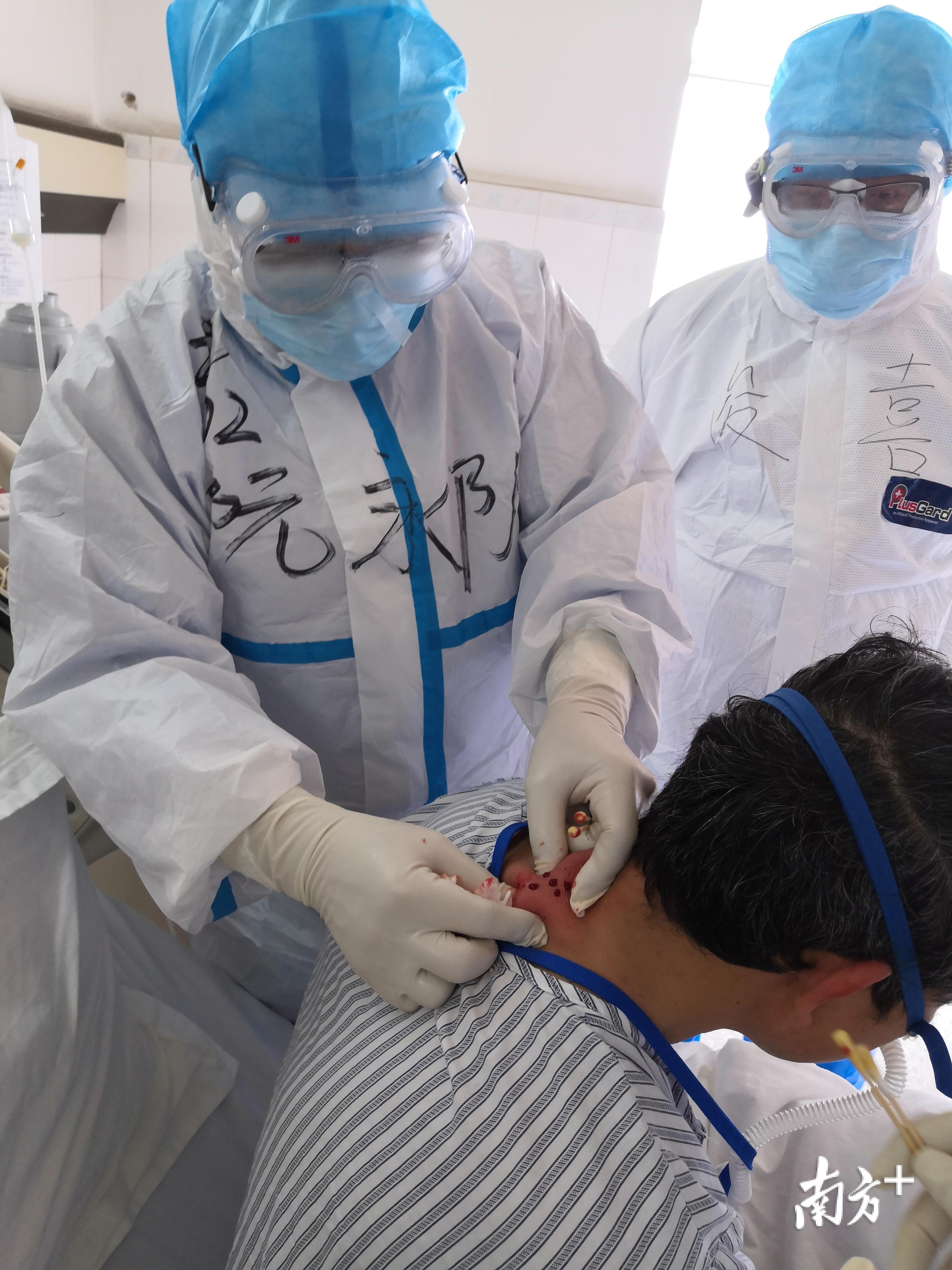 “患者张开嘴巴,伸出舌头,经常会忍不住咳嗽,大量的飞沫直接对着你正面喷来。”阮永队说,他们要身穿最严格的三级防护装备,戴着护目镜外还要戴面屏,以防被感染。可戴护目镜会起雾,影响视线,要想看清就要更靠近患者口腔。为了看得更清,他们还会用手机拍照传回办公室,再集体探讨病情。