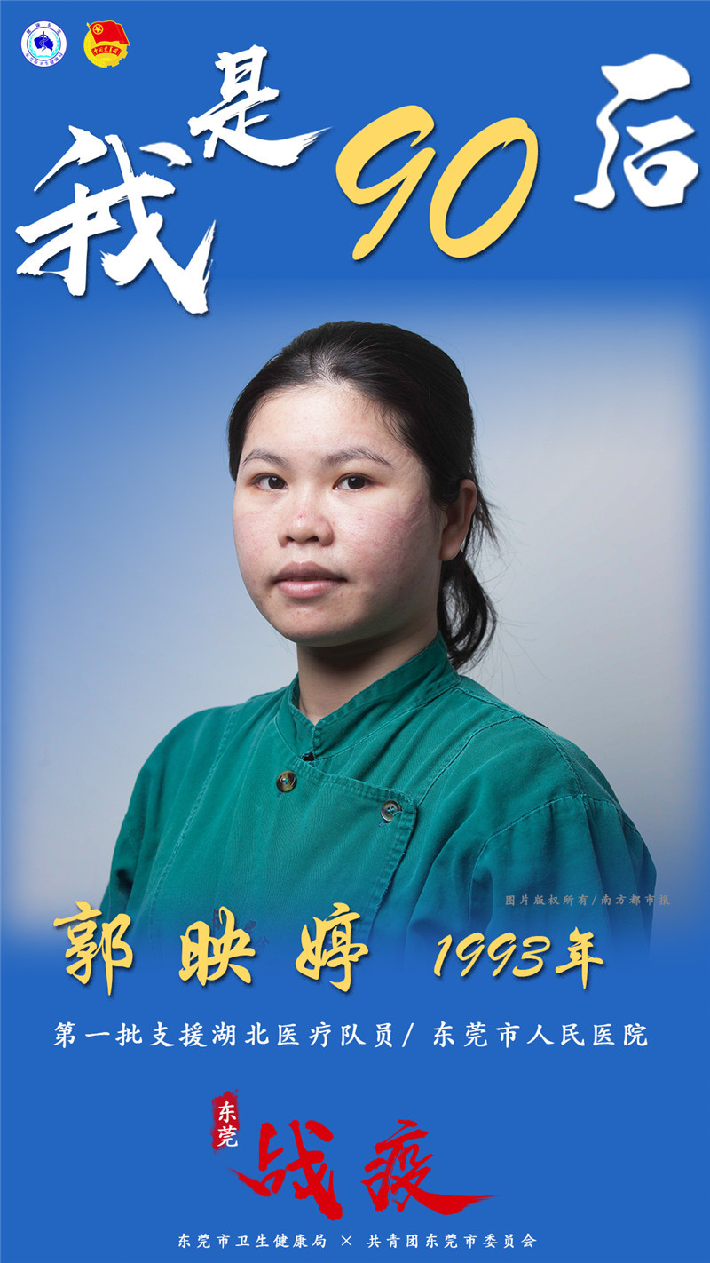该院呼吸与危重症医学科普济病区护士长钟映笑为郭映婷点赞:“面对突如其来的新冠肺炎疫情,她毅然加入东莞市第一批支援湖北疫情防控医疗队,战斗在防控第一线,用生命和汗水守护人民群众的生命安全,是我们科室全体医护人员学习的榜样,我们以她为荣!”