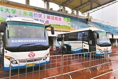 松山湖社区卫生服务中心在全市率先采购、租赁3辆新冠病毒疫苗移动接种车,首批2辆开进广东医科大学东莞校区和高新技术企业。他们首批计划用7天时间,为该校1.3万师生接种疫苗。