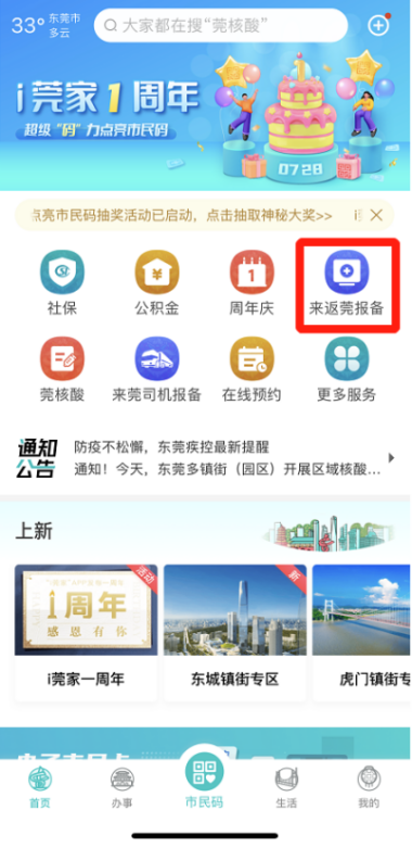 来(返)莞人员扫描下方二维码或前往各大应用市场下载“i莞家”APP(须注册,认证身份和手机号),进入“莞e申报-来(返)莞人员报备”。