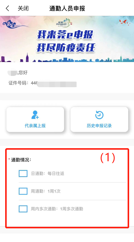 注:“在莞居住”、“外市居住”都支持“代亲属上报”,具体均可参照以下步骤。