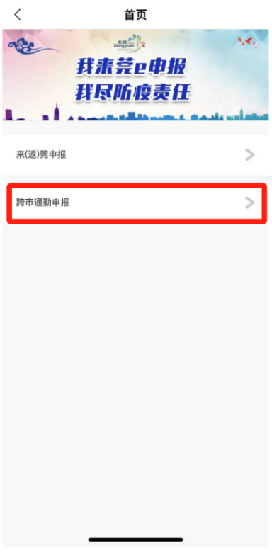 跨市通勤人员通过“i莞家”APP(须注册,认证身份),进入“来返莞报备”点击“跨市通勤申报”;