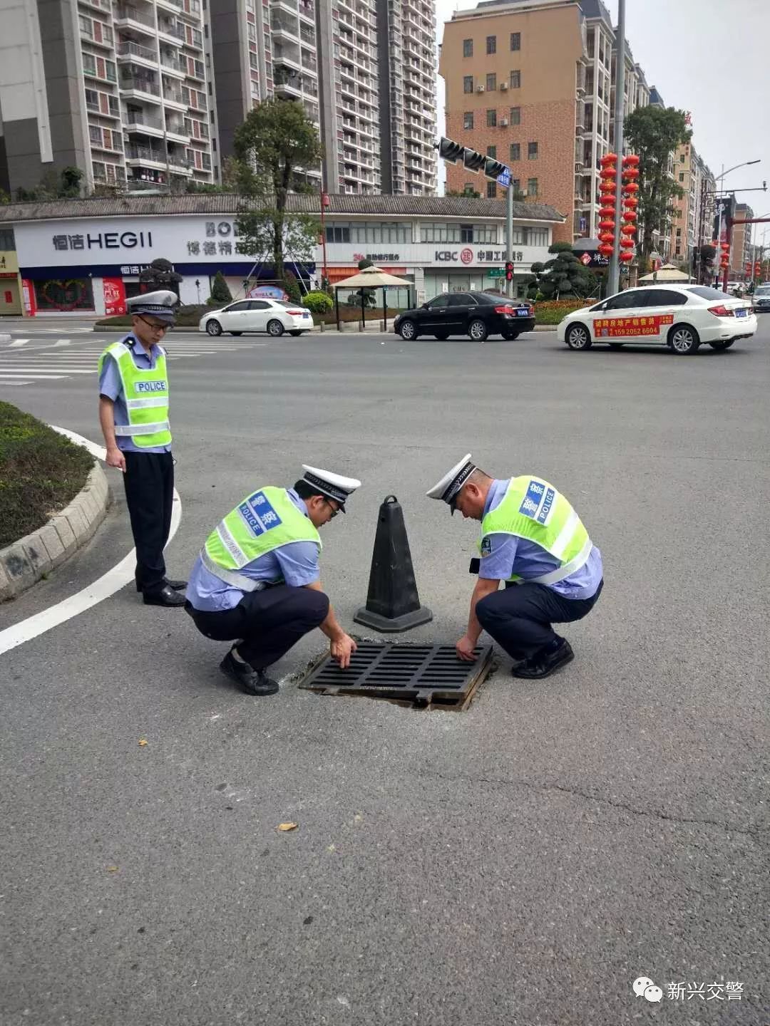 民警在车流高峰期进行分流