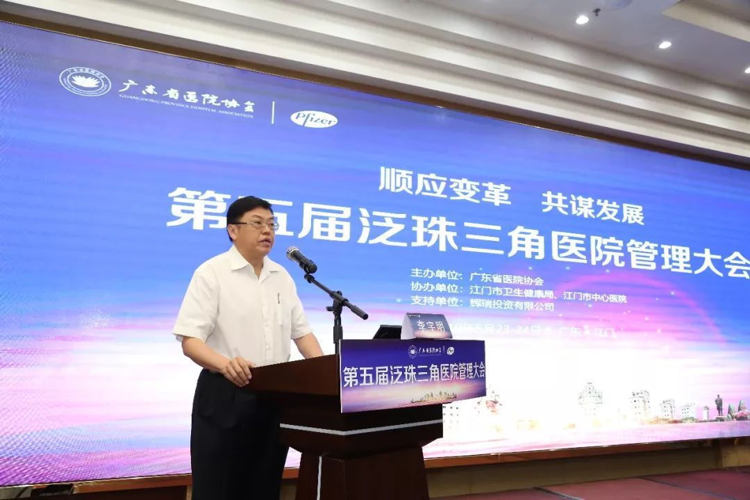 本届大会是在国家卫生健康委、广东省卫生健康委、江门市政府的大力支持下,由广东省医院协会主办,江门市卫生健康局、江门市中心医院协办。大会主题为“顺应变革 共谋发展”。江门市政府赖燕芬副市长、广东省医院协会黄力会长、广东省卫生健康委基层卫生健康处史明丽调研员、江门市卫生健康局周津明局长等领导出席了大会。