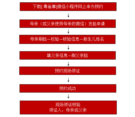 按照省府办公厅《关于开展全省出生医学证明网上申领及电子证照同步签发工作的通知》要求,拟在广州、江门、肇庆三市开展通过粤省事小程序申请出生医学证明工作试点。启用时间:2018年7月16日试点三市要全面启用线上申领功能。申领流程如下: