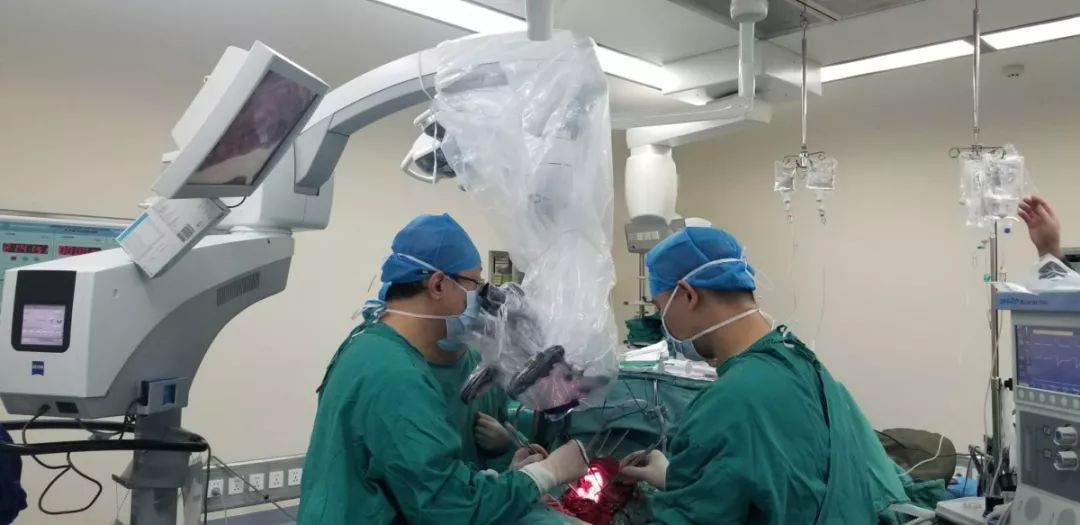 该患者Hunt-Hess分级为五级,预后不良,一般不建议手术,但家属坚决要求积极手术抢救,考虑到患者瞳孔散大时间不长及家属的强烈意愿,当机立断放手一搏,患者迅速被推入手术室,在动脉瘤已经破裂的情况下,争分夺秒赢得了宝贵的手术时间。