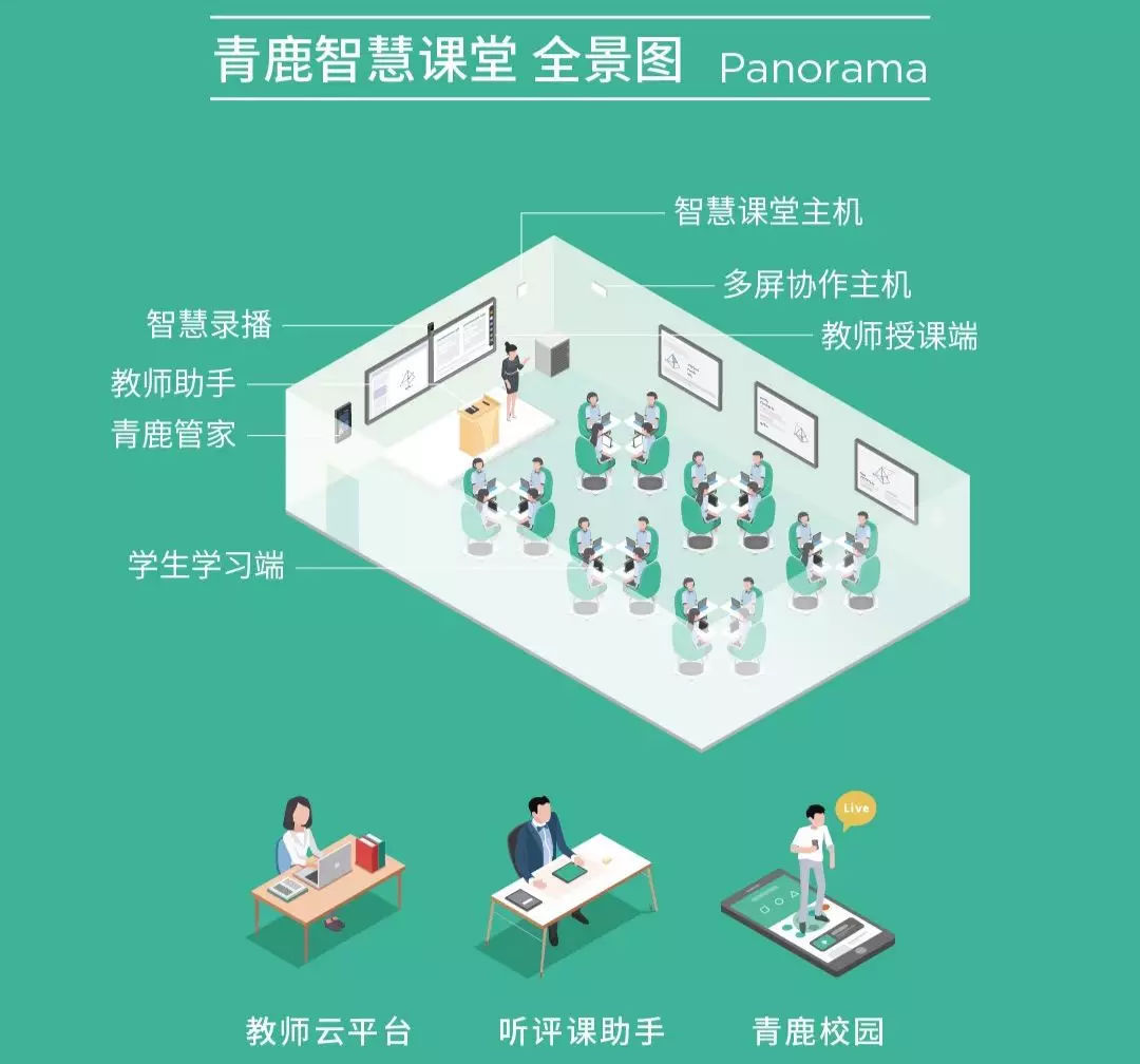 青鹿教育团队发挥自身的技术优势,结合人工智能、大数据、云计算、物联网等新一代高新技术,以深刻的行业洞察,结合先进的教育理念,为学校量身打造涵盖课前课中课后、打通校内外的全场景智慧课堂解决方案,将教学场景与产品使用场景深度融合,力求让学校高效、低成本地建设常态化的智慧学习环境,助力智慧学校建设。