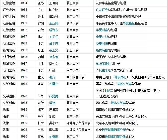 相比而言,文学、传媒、法律、证券、金融等专业技术领域,高考状元的职业成就高很多,行业顶尖人才和领军人物频现。