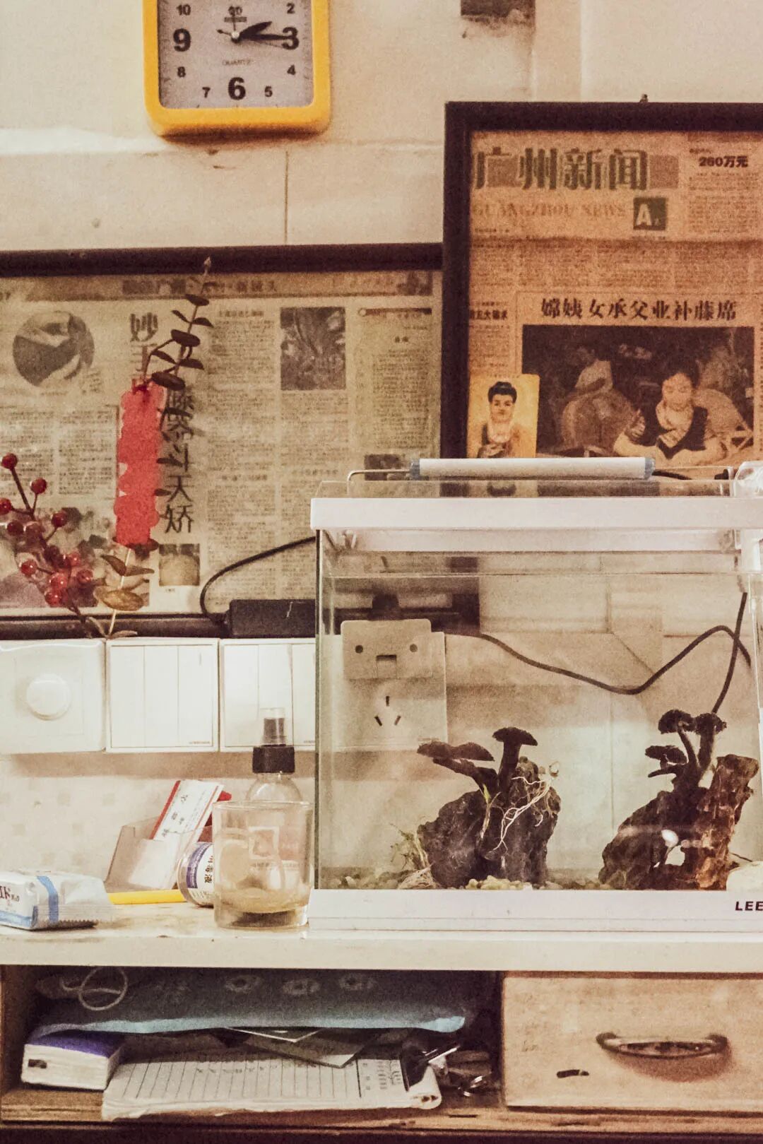嫦姨蹲坐在铺头的小板凳上,在她的面前,摆放着两个旧得不像样的家具:一个不到半米宽的折叠木桌,一个堆放杂物的简陋立柜。