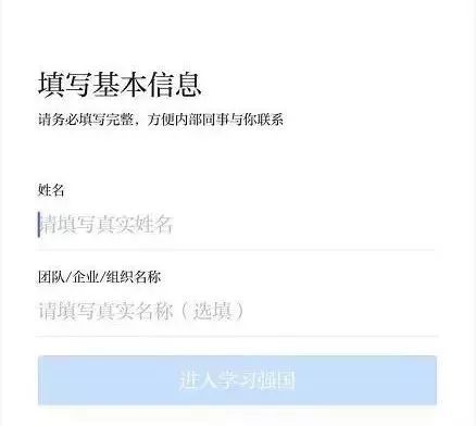 ❹ 填写“真实姓名和单位”,即可进入“学习强国”,完成注册。