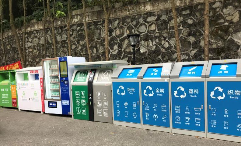 ● 小区里共32套智能分类箱,一套智能回收箱,两台智能发袋兑换机。