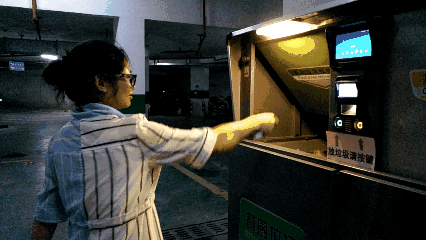 ❷欧女士会把厨余垃圾另外装起来,再扔到小区的智能垃圾桶。