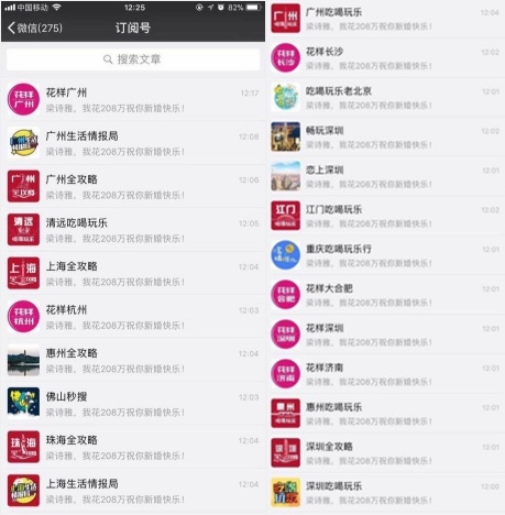 21中午12:00左右,全国超过100家生活类自媒体,集中在微信号头条推送了《梁诗雅,我花208万祝你新婚快乐!》的文章。