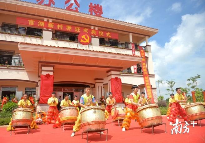 早上9点,官湖村彩旗飘飘、热闹非凡、锣鼓喧天,不少别墅大门张灯结彩,一千多名村民聚集在村委会新办公大楼,举行集体入伙庆典仪式,庆祝乔迁新居。据不完全统计,目前已有30多户村民搬进新房。点击链接看直播