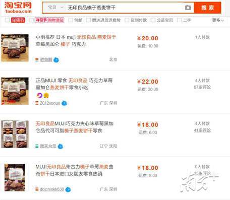 随后,记者在淘宝上搜索相关的饼干的网上销售情况。