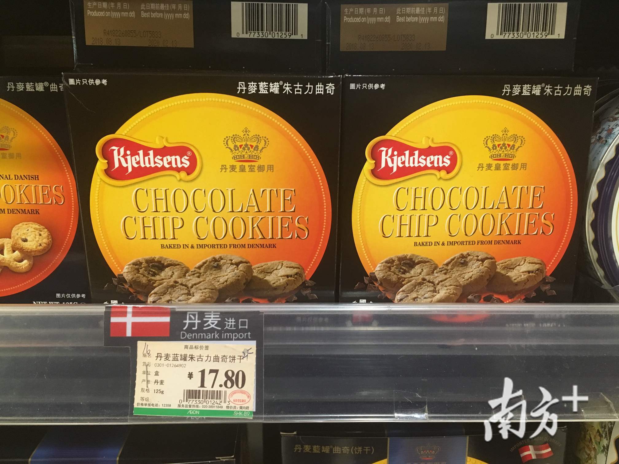 随后,记者来到位于天河区Zippo的吉之岛里,“丹麦蓝罐曲奇”是重点推销的年货,被摆放在店前。店前有朱古力与黑加仑味曲奇摆在货架上。网文中提到,香港查出这两款产品含有致癌物质。