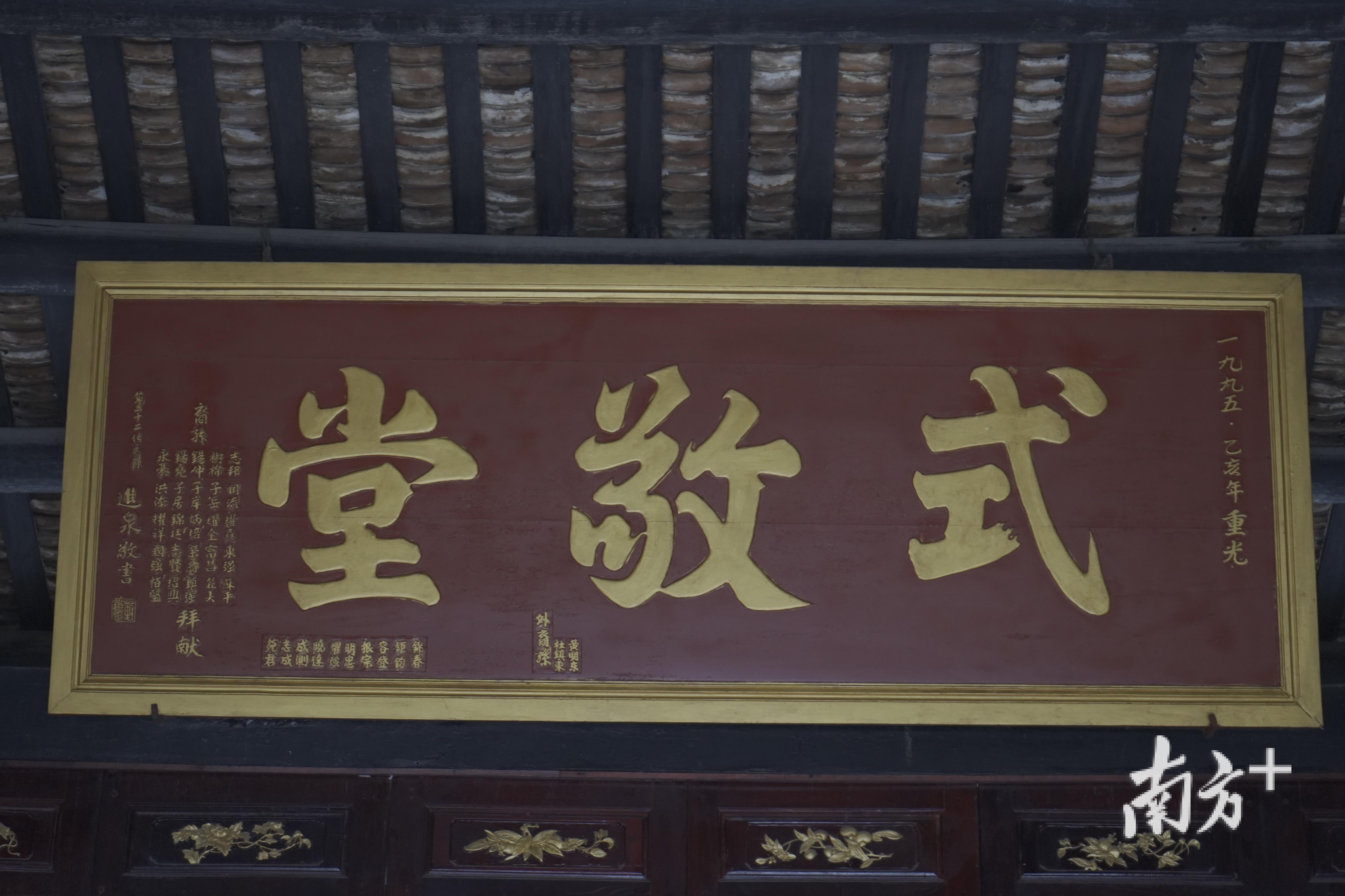 “为纪念先祖晴川公苏绍箕,明代成化年间村里建起了祠堂。”晴川苏公祠理事会会长苏金潮说,自建成后,晴川苏公祠经历了多次修缮,最近一次在上世纪90年代。当时苏公祠荒废已久,被用作仓库近20年,在车陂苏氏宗亲的合力推动下重修苏公祠,建成现在大堂、“式敬堂”和“祖堂”三进式格局。