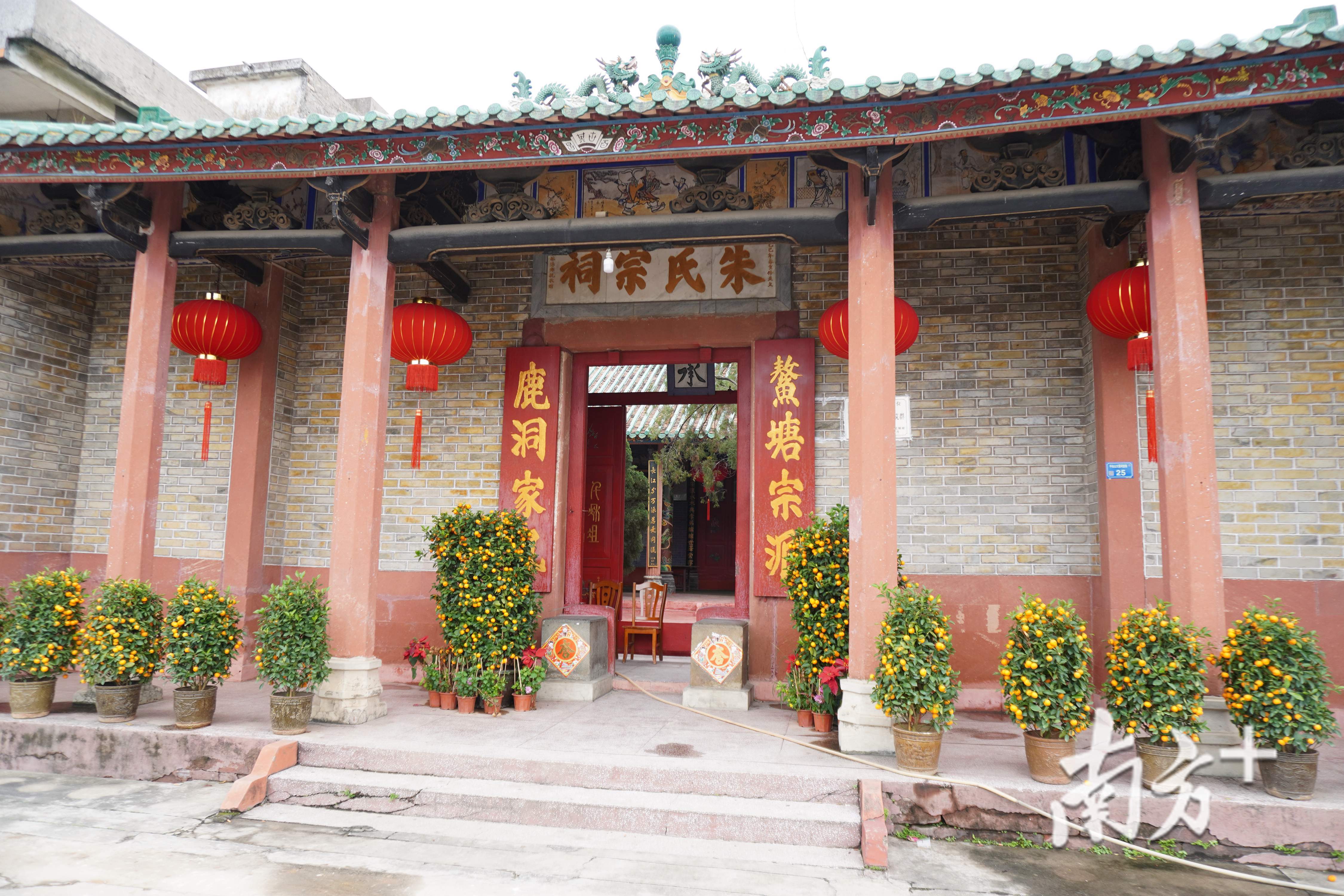朱氏宗祠建于明嘉靖42年(1563年),曾在1984、1989年,两次翻修。宗祠为五开间三进四合院式布局,硬山顶,红石为柱,青石、红石作柱础。第二进金柱为木柱,有木櫍。梁架驼峰雕刻精美,是原汁原味的岭南民间建筑。