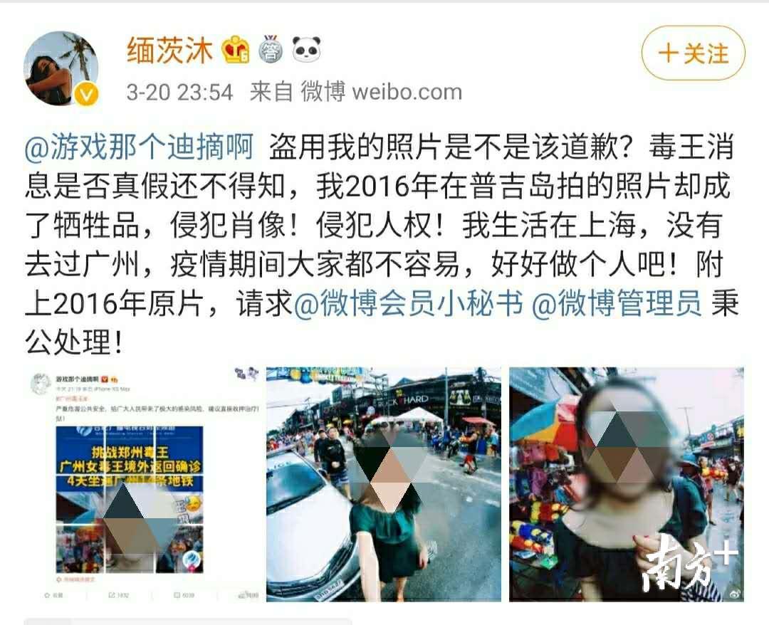 然而,这张热传的图片竟然是盗图。当晚,旅游博主@缅茨沐 抛出了网传的原照片,并发文称照片为2016年在普吉岛拍摄,在“毒王”消息是否为真还不得知的情况下,成了网络暴力的牺牲品。因为被侵犯了肖像权和名誉权,她要求转发者道歉。