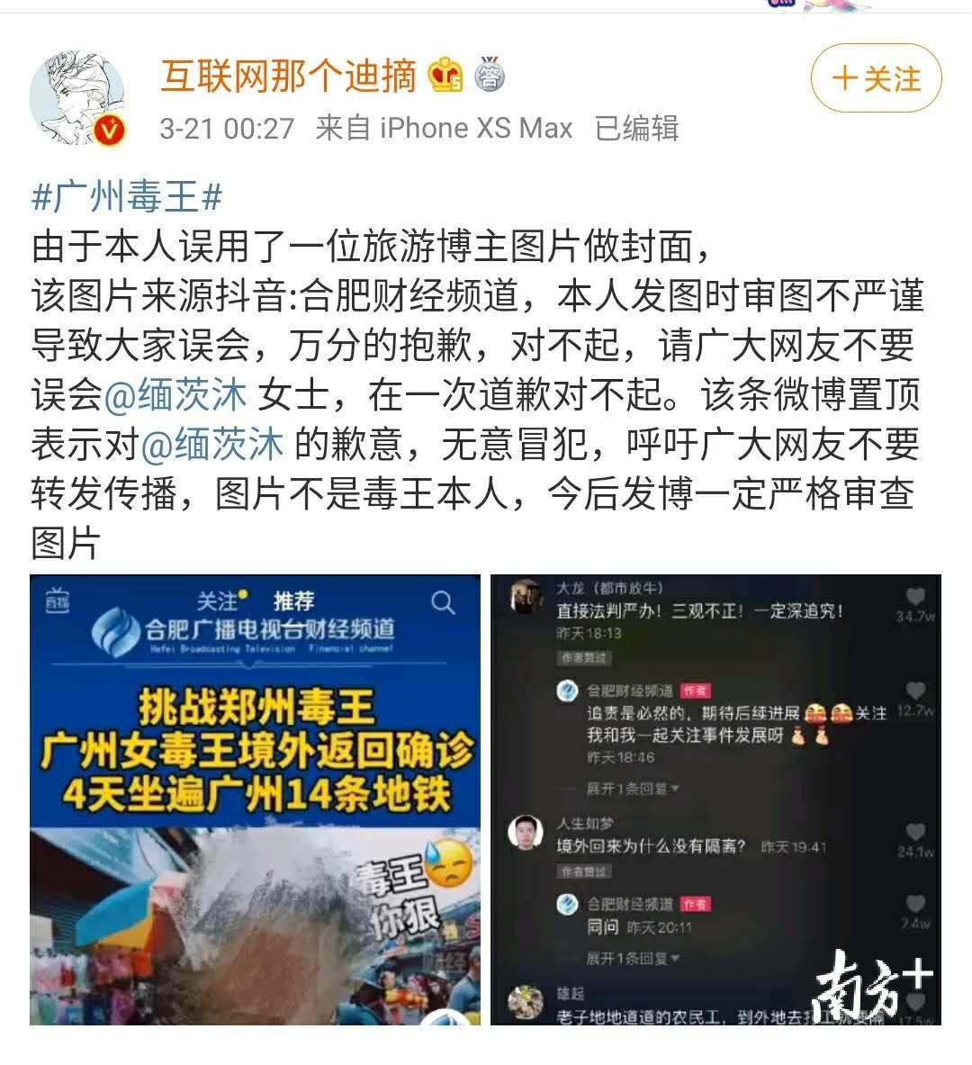 “广州女毒王”竟是盗图,转发大V发文道歉