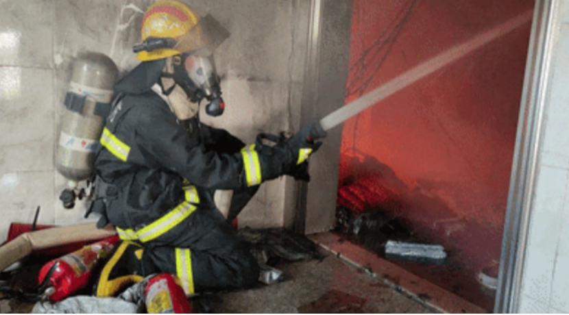 当天14时25分,现场明火被扑灭,随后消防员继续对现场进行降温排烟处置。