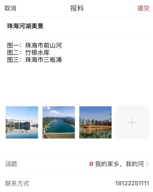 看到“我要报料”的入口,选择话题#我的家乡,我的河,进行投稿,在收到你的报料后,管理员进行审核,并给你发送通知提醒。