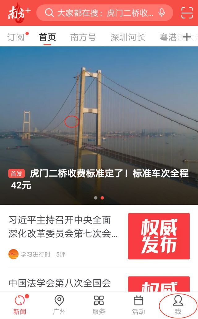 下载南方+客户端,打开客户端,点击首页右下角的“我”入口。