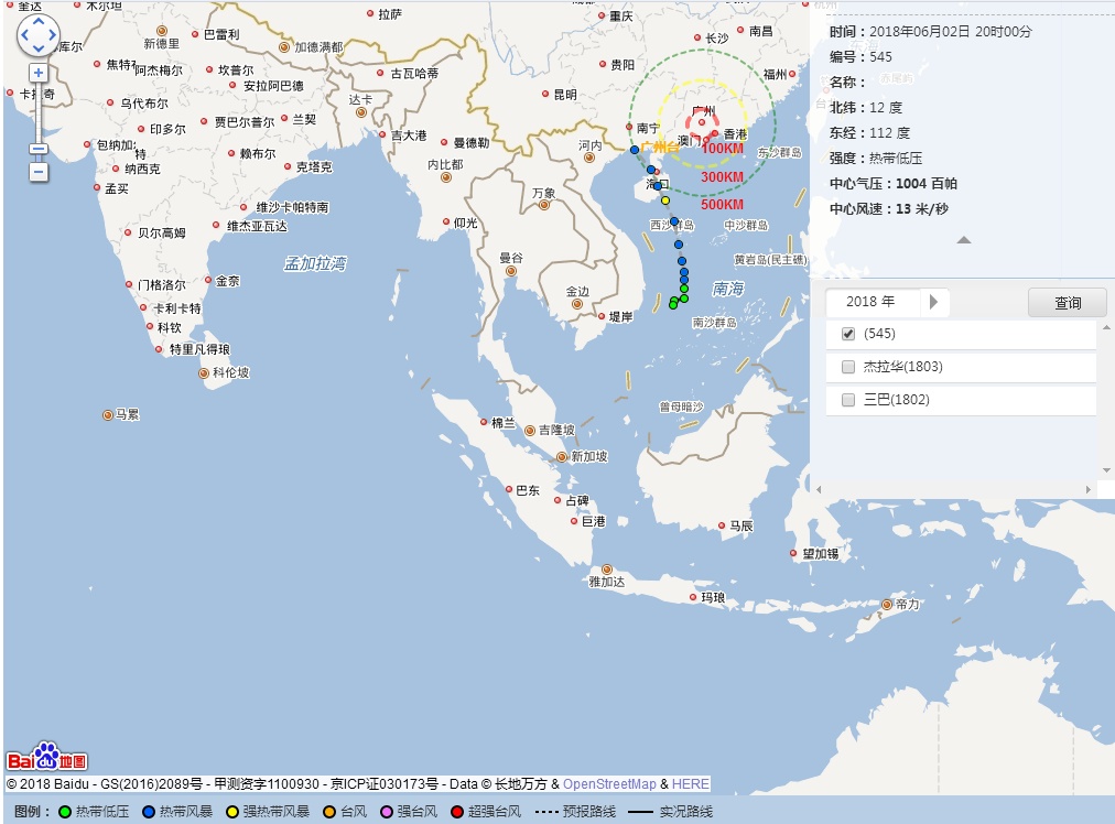 今天下午14时,原位于南海中南部海面的热带扰动加强为热带低压,其中心位于北纬11.5度、东经111.3度,也就是在南沙永暑礁西北方向约280公里海面上,中心附近最大风力6级(13米/秒,相当于47公里/小时),中心最低气压1004百帕。预计其将以每小时10公里左右的速度向北偏东方向移动。