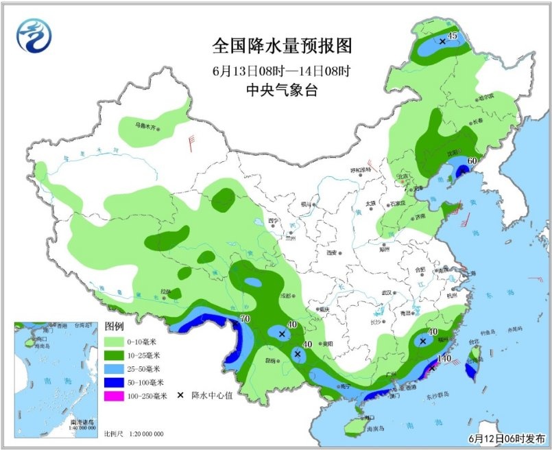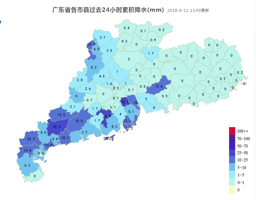 12-13日,广州、深圳等珠江三角洲市县以及潮州、汕头等粤东市县和河源、梅州有暴雨到大暴雨局部特大暴雨,清远、韶关、阳江、茂名有暴雨局部大暴雨,其余市县大雨局部暴雨;14-15日,广东南部沿海市县有大雨局部暴雨,其余市县雷阵雨局部大雨。
