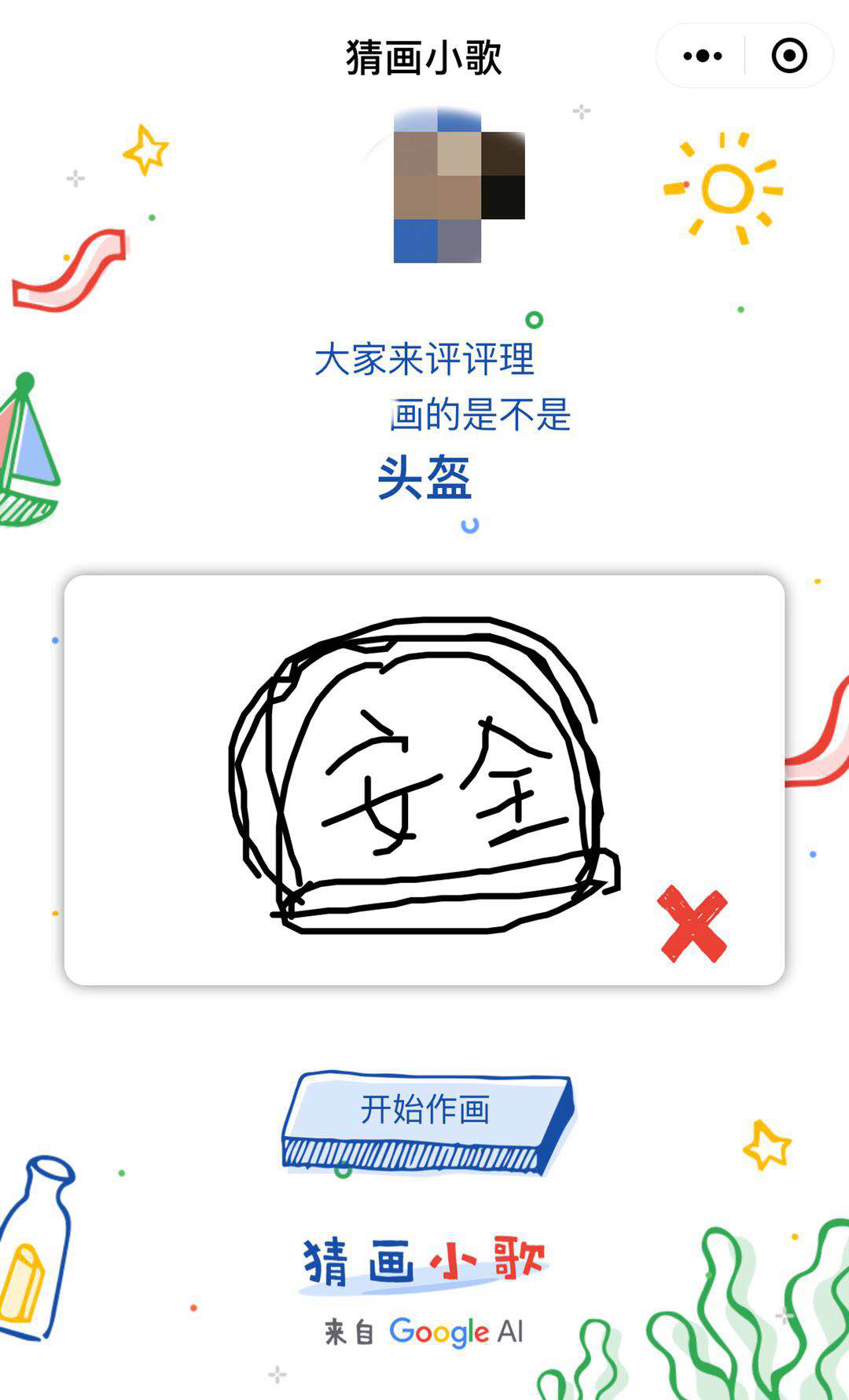 点击“开始作画”,你可以在画布内对关键词的物品进行速写,ai会识别并猜出关键词,猜中了就可以进入下一关。