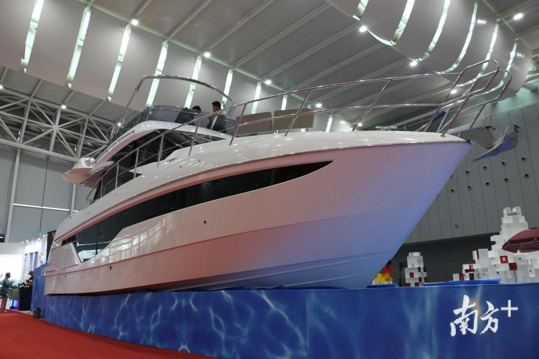 一架本该在海上驰骋的高端游艇,惊艳亮相今天的潭洲国际会展中心,吸引着不少观众和媒体的“长枪短炮”,纷纷拍照记录。
