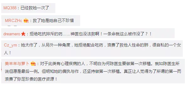 “她拒绝必须的用药治疗,导致双肺反复感染,诱发慢性排斥,她甚至不遵医嘱不吃排异药。”