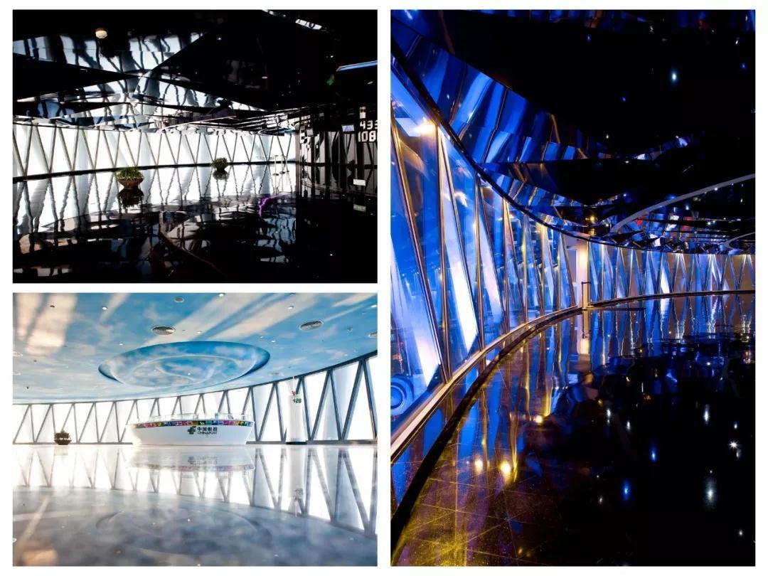 107/108观光层是广州塔室内观光的最高点,分别以白云和星空为主题的两层观光大厅,城市新中轴线和广阔珠江尽收眼底。