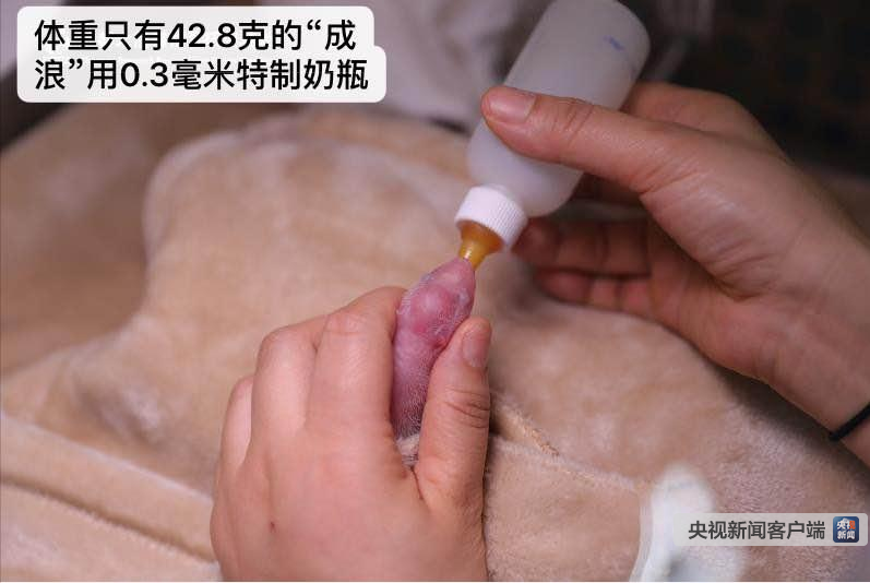 眼前这个还没有普通鸡蛋大的“粉红团子”就是“成浪”,在成都基地的保育箱里,“成浪”伸着懒腰,打着哈欠,发出类似于小奶狗一样的撒娇声。别看这会儿风平浪静,刚出生的“成浪”和新生儿一样,有失水状况,体重一度从42.8克下降到了38克。