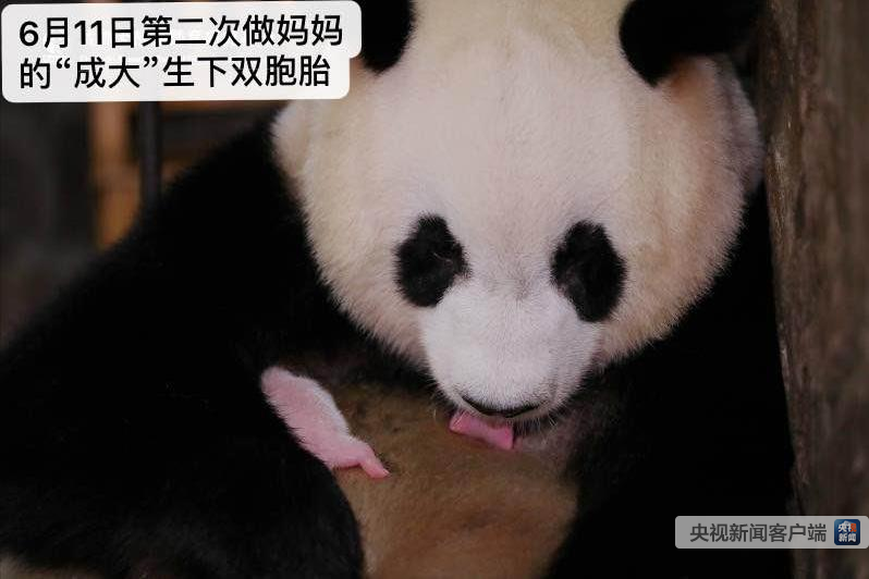 6月11日,四川成都大熊猫繁育研究基地8岁的雌性大熊猫“成大”顺利产下双胞胎幼仔,这是今年全球出生的首对大熊猫双胞胎。