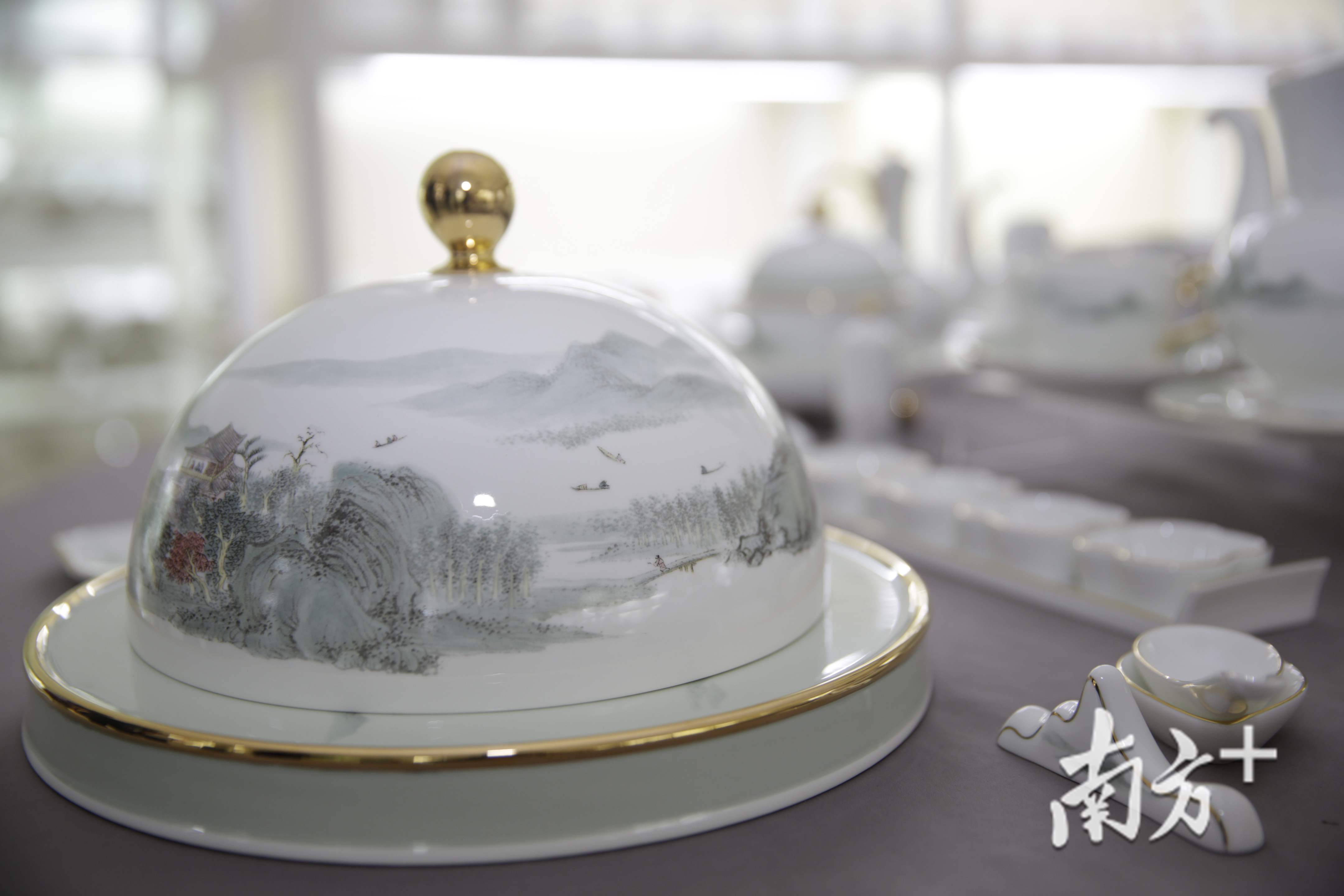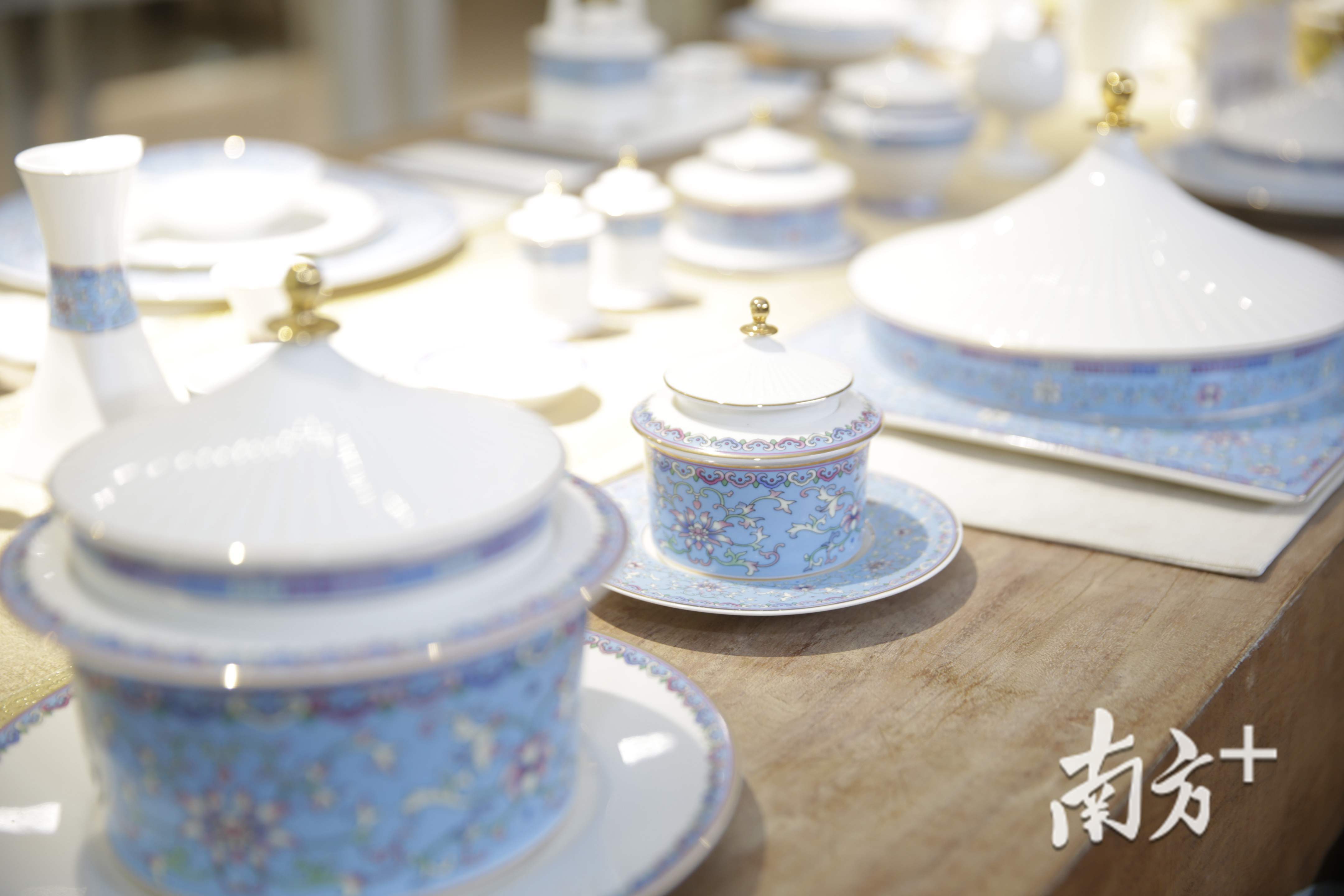 2006年前后,松发公司获得一笔特殊的订单——生产制作人民大会堂专用瓷“胜利杯”。当新做出来的“胜利杯”从潮州启运赴京,这意味着松发公司成为第一家生产人民大会堂专用瓷的“民”字号企业。后来,松发公司的“蓝宝牡丹”系列餐具,又被选为人民大会堂国宴用瓷。