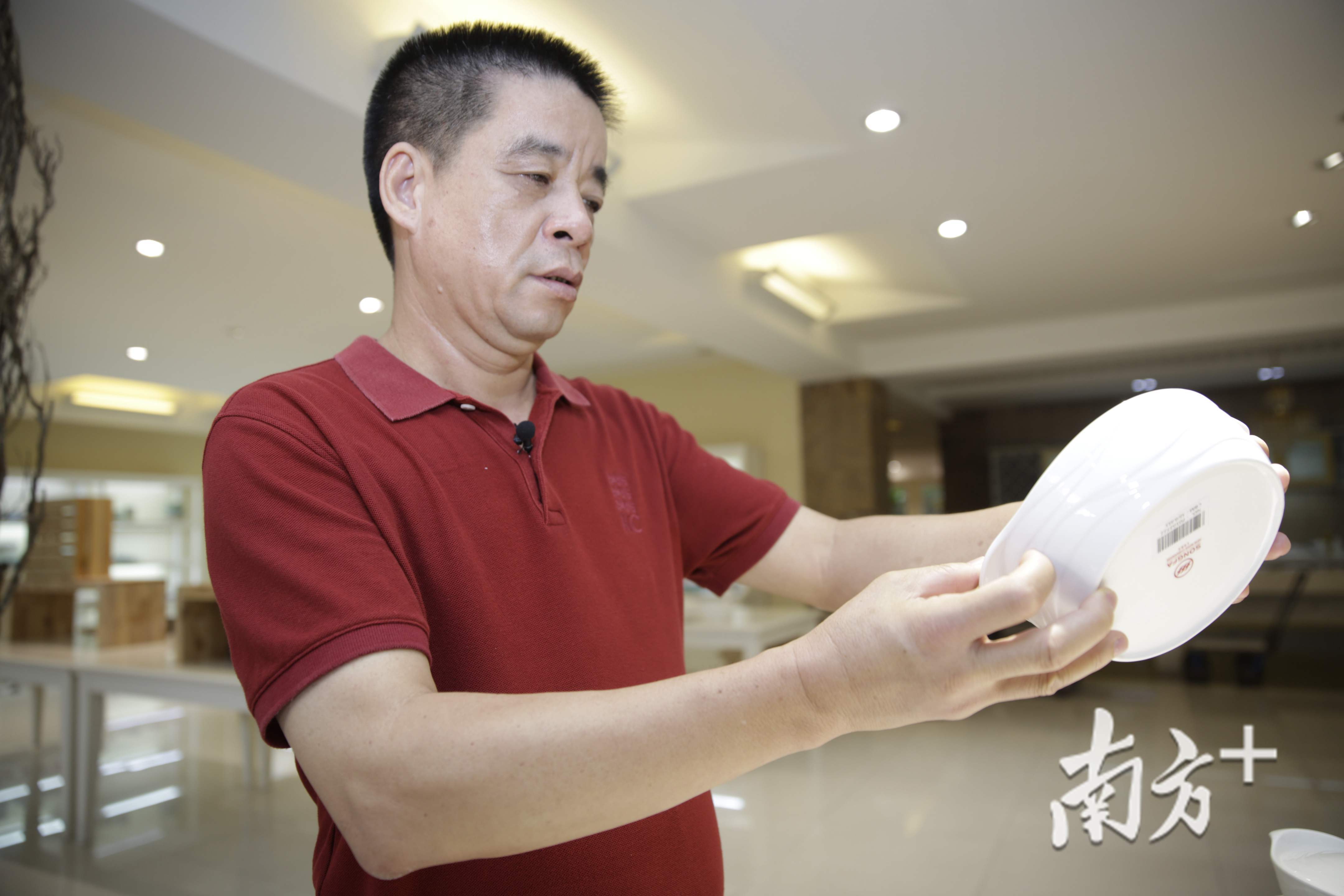 他记得1996年第一次在广交会参展时,争取到了一张洽谈桌,倍感幸运。有欧洲客户跟他下订单,需要制作一批陶瓷烤盘。他四处打听,寻到潮州华侨瓷厂,终于买到符合欧洲器型风格的烤盘白胎。随后,用心揣摩客户的需求,刻花、施釉、烧窑,一个针孔、一个瑕疵都不放过,最终货品验收合格。
