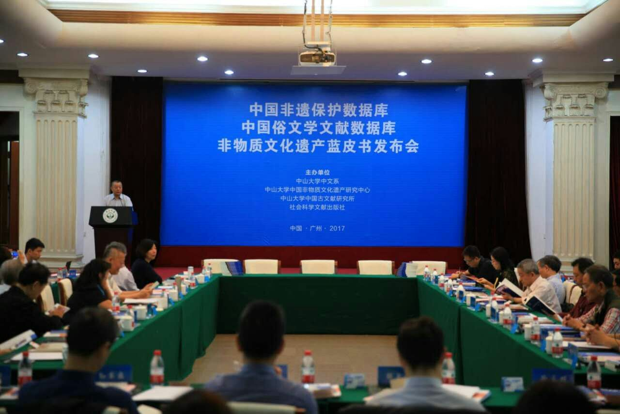 10月29日,由中山大学和社会科学文献出版社联合主办的“中国非遗保护数据库、中国俗文学文献数据库及《非物质文化遗产蓝皮书》新书发布暨非遗保护研讨会”在广州中山大学举办。来自文化部、广东省文化厅、中国社会科学院、北京大学、北京师范大学、中国人民大学、中国戏曲学院、中国戏剧研究院、澳门城市大学、中山大学等部门、高校和科研院所的领导和专家学者与会。