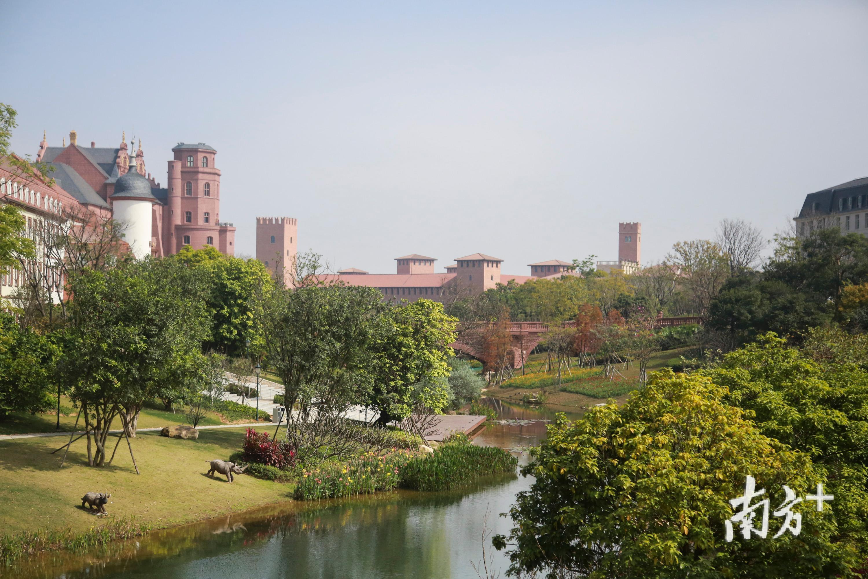 红色的小火车缓缓停在巴黎站,这里的建筑风格借鉴了巴黎国际大学城,蓝色屋顶搭配上米黄的莱姆石和特色法式凸窗,让观者感受到法式的雅致考究。小镇内其他组团分别借鉴了欧洲不同城市的风格,如博洛尼亚区里借鉴了意大利文艺复兴时期的特色建筑,维罗纳区则借鉴了维罗纳中世纪的古城。在欧洲小镇中,一条河流贯穿其中,幸运的话可以看到黑天鹅带着小鸭子在河里嬉戏。
