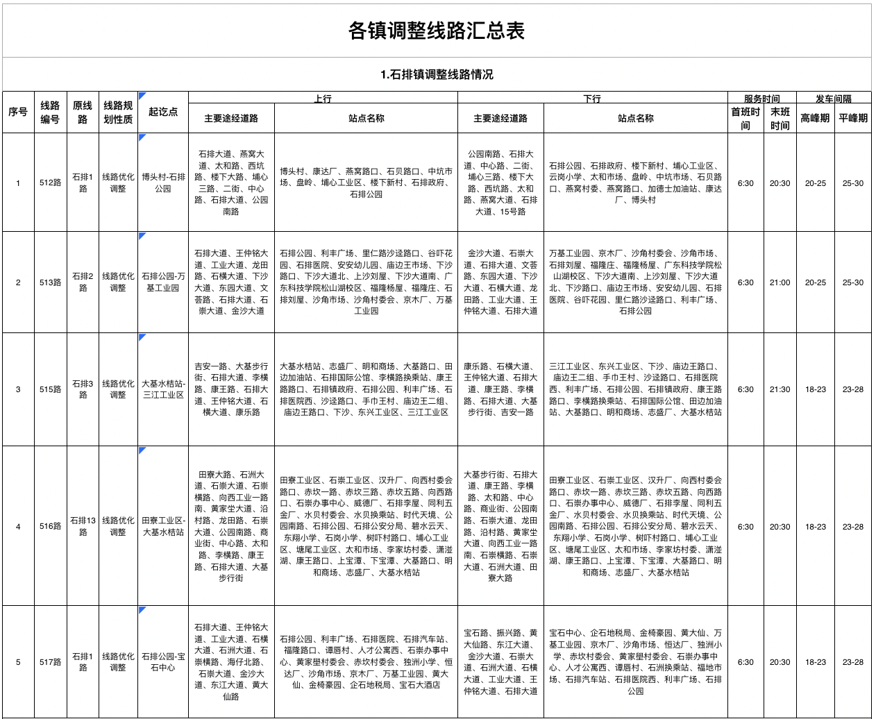 一、石排镇公交线路规划情况